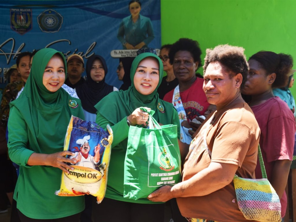 Merauke, Jurnal Selatan Papua – Tim Penggerak PKK Provinsi Papua Selatan, Kabupaten Merauke dan Kodim 1707/Merauke yang dipimpin langsung oleh Ketua TP PKK Provinsi Papua Selatan Ny. DR. (cand) Katharina AIS Safanpo menggelar aksi sosial berupa pemberian sembako kepada masyarakat Kampung Poo terdampak banjir bertempat di Gereja Kampung Poo Distrik Jagebob Kabupaten Merauke – Provinsi Papua Selatan. Sabtu (29/3/25).
