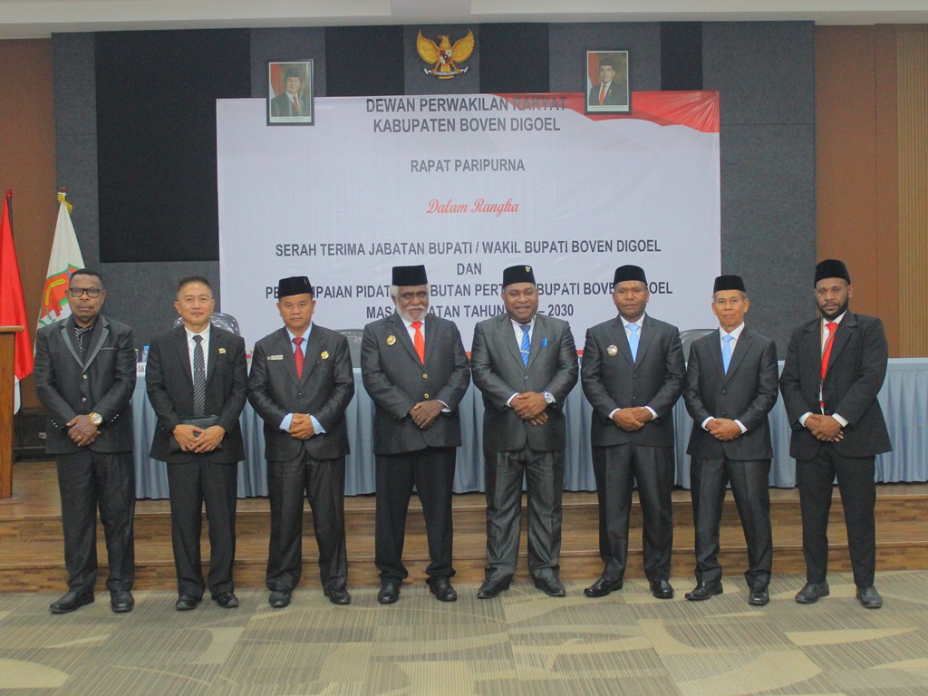 Merauke, Jurnal Selatan Papua — Dewan Perwakilan Rakyat Kabupaten (DPRK) Boven Digoel menggelar rapat paripurna istimewa dalam rangka serah terima jabatan (Sertijab) Bupati dan Wakil Bupati Boven Digoel masa jabatan 2025–2030, sekaligus mendengarkan pidato perdana Bupati terpilih Roni Omba bersama wakilnya, Marlinus.